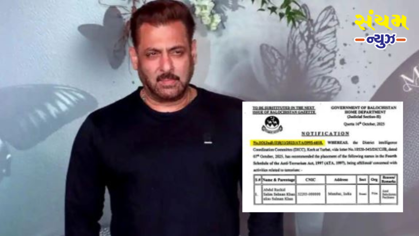 મળતી માહિતી મુજબ, બોલિવુડ અભિનેતા સલમાન ખાનને આતંકવાદી ગણાવતો એક લેટર સોશિયલ મીડિયા પર વાઇરલ થઈ રહ્યો છે. એવો દાવો કરવામાં આવી રહ્યો છે કે આ લેટર પાકિસ્તાન સરકાર દ્વારા જારી કરવામાં આવ્યો છે.