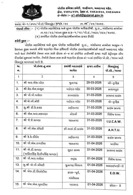 જે અધિકારીઓ અગાઉ કોઈ વિવાદમાં આવ્યા હોય અથવા જેમની કામગીરી નબળી રહી હોય, તેમને મહત્વના પોલીસ સ્ટેશનોને બદલે કંટ્રોલ રૂમ કે ટ્રાફિક વિભાગ જેવા સાઇડ પોસ્ટિંગમાં મૂકવામાં આવ્યા છે. નારોલ, નરોડા, વટવા, બોડકદેવ અને નવરંગપુરા જેવા મહત્વના પોલીસ મથકો જે અત્યાર સુધી ઇન્ચાર્જ પીઆઈથી ચાલતા હતા, ત્યાં હવે કાયમી પોસ્ટિંગ આપી દેવામાં આવ્યું છે.